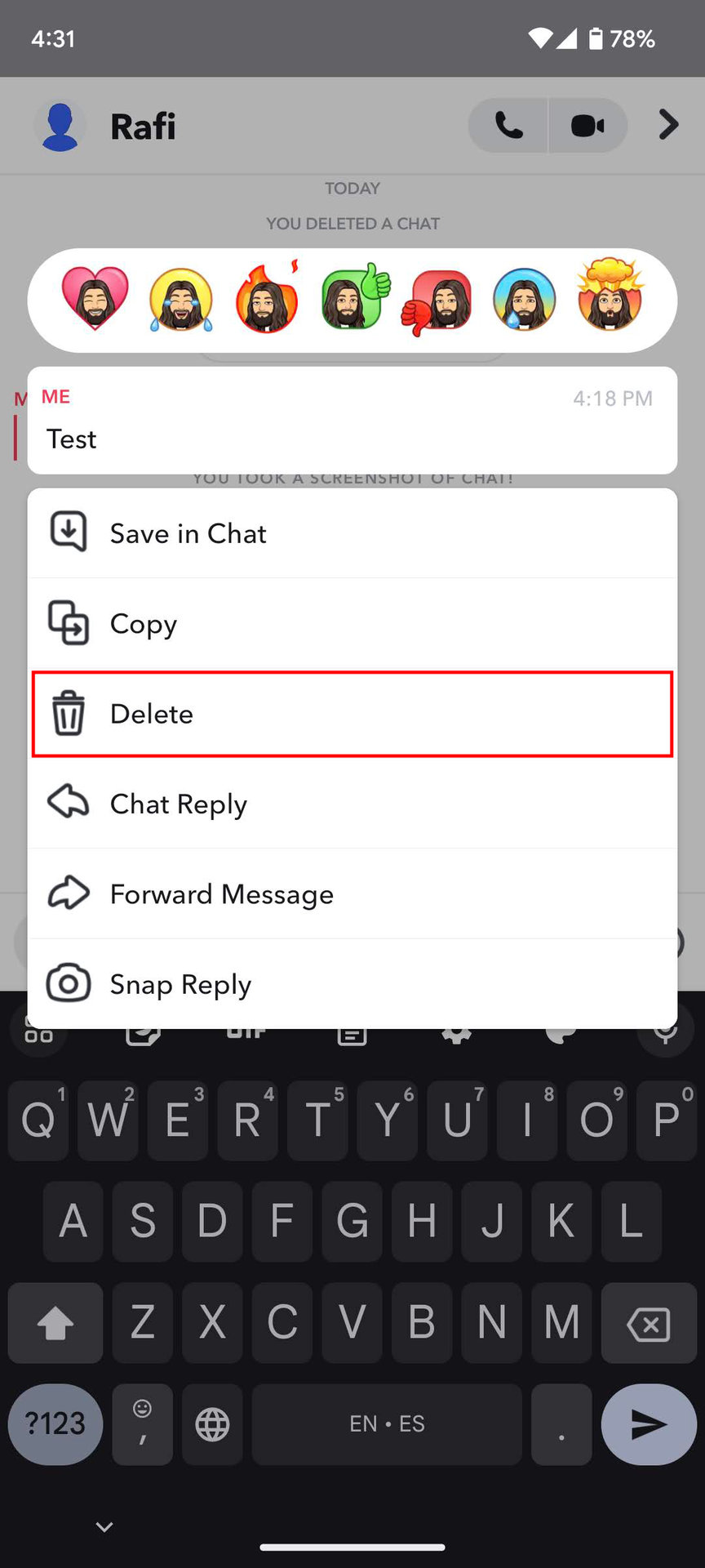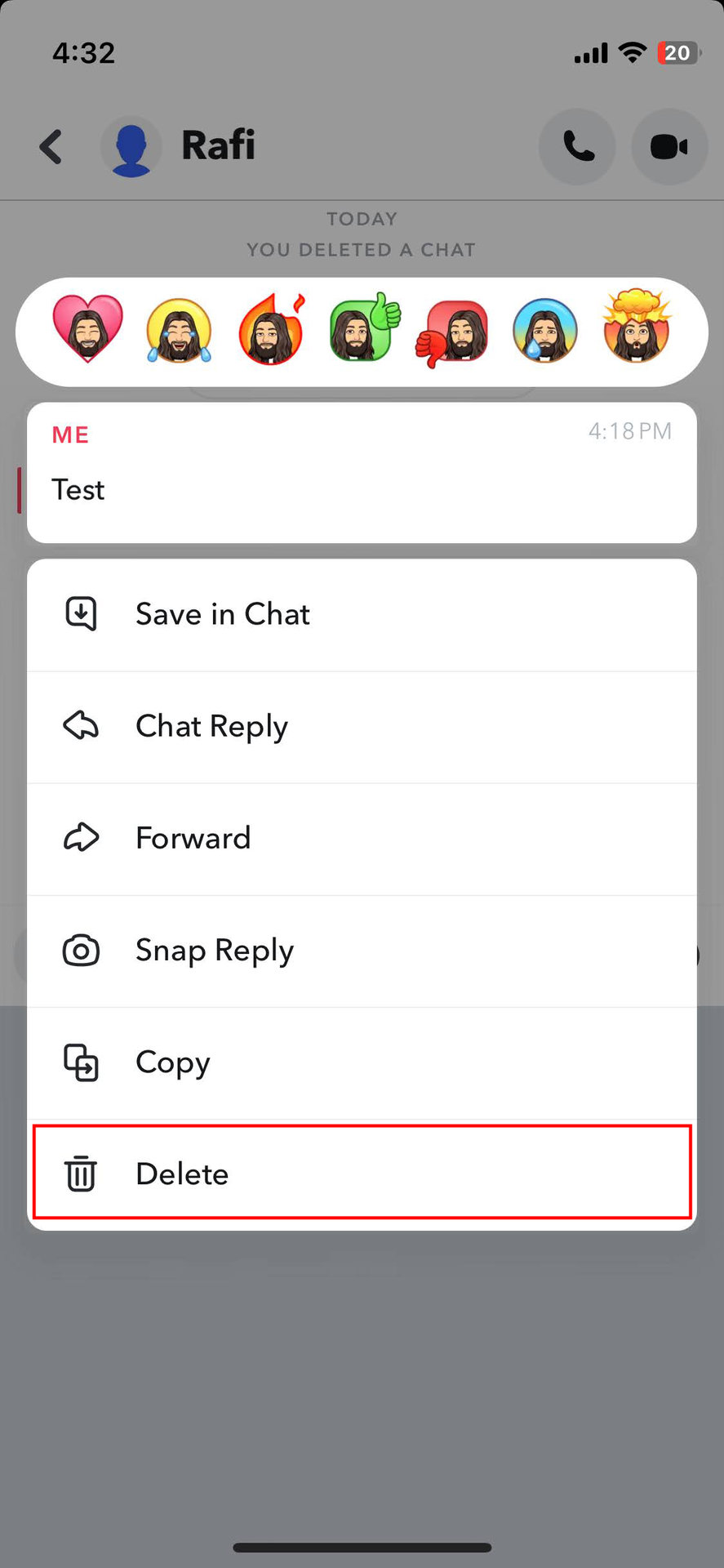 To delete a Snapchat message, go to your conversation. Tap and hold the message you wish to delete, then select the Delete button. In the Delete Chat? confirmation prompt, select Delete Chat one last time.