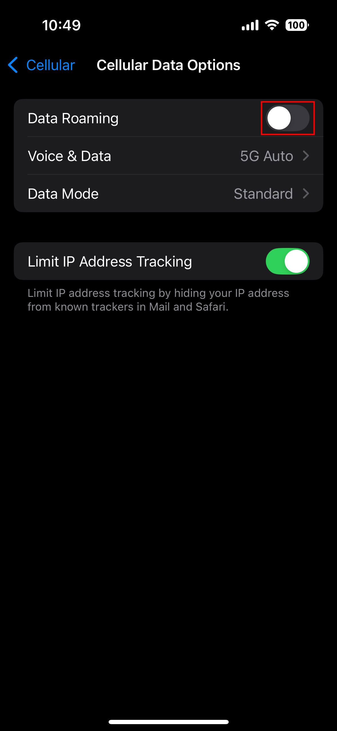 - You can also go into Cellular Data Options and toggle on Data Roaming (this may incur extra charges).