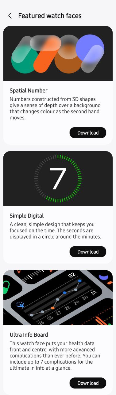 Three One UI 6 watch faces are on offer for older Galaxy Watches, namely Spatial Number, Simple Digital, and Ultra Info Board. The outlet reported that they were able to install one of these watch faces on the Galaxy Watch 4, but the other faces should work just fine on your wearable.