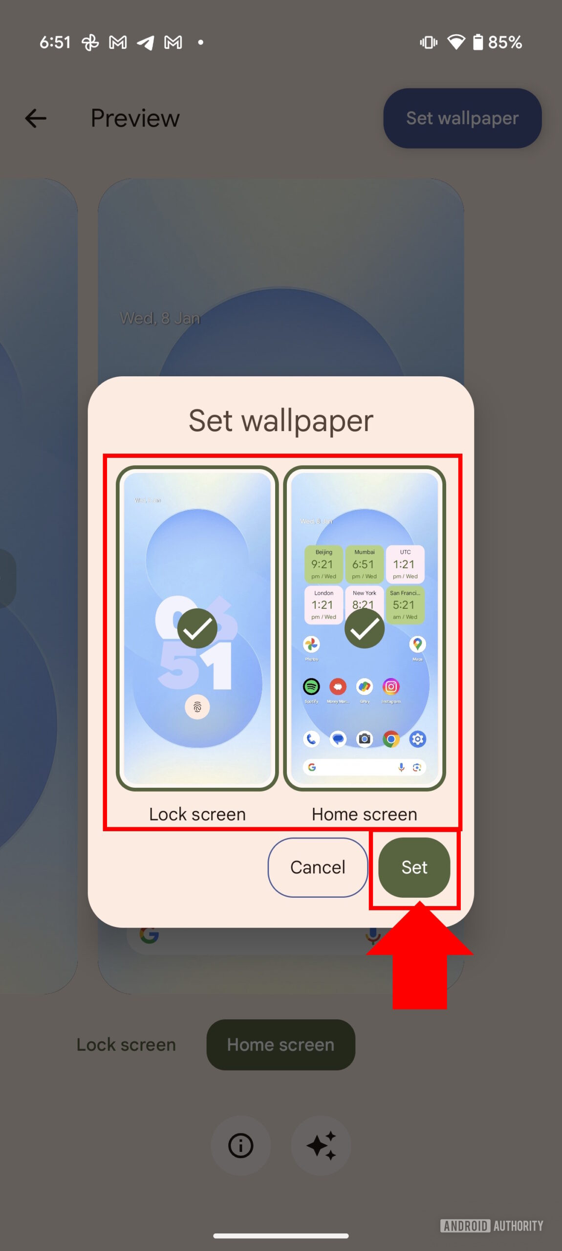 - Pick whether you want to set the wallpaper on your Home screen, Lock screen, or both.