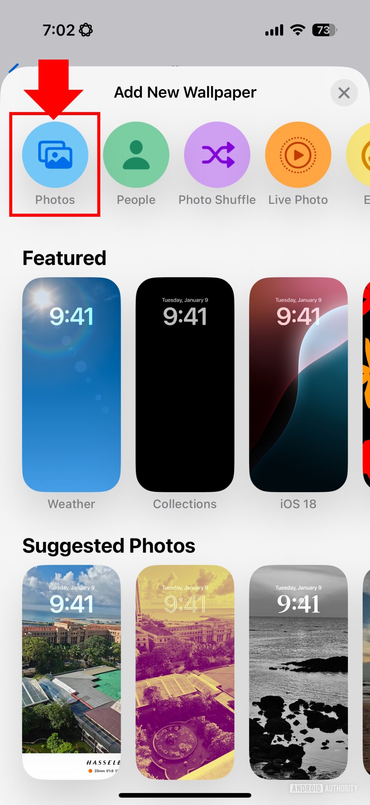 - Find and select the Galaxy S25 wallpaper you want to set from the Photos option.