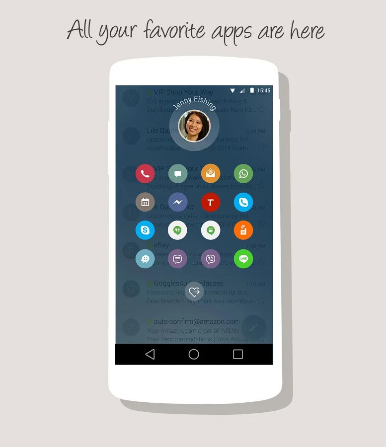 drupe is an app that constantly floats on your screen so you can take advantage of it anytime you’d like. Once you swipe over the four “drupe dots”, the app will open and will show you a list of frequently contacted friends on the left side and your most used social networks/messaging apps on the right. So instead of navigating to an application and typing in your friend’s name to get in contact, all you need to do is open drupe, select the friend you’d like to contact and drag their image over to the app you’d like to use.