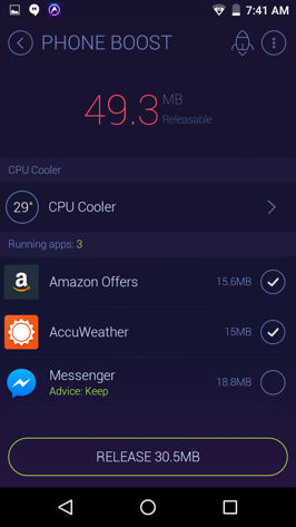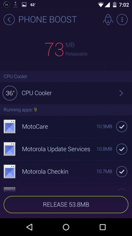 Starting with Phone Boost, this feature shows you apps that are wasting the phone’s memory resources in the background, and lets you release this RAM in order to give your device a bit more speed.