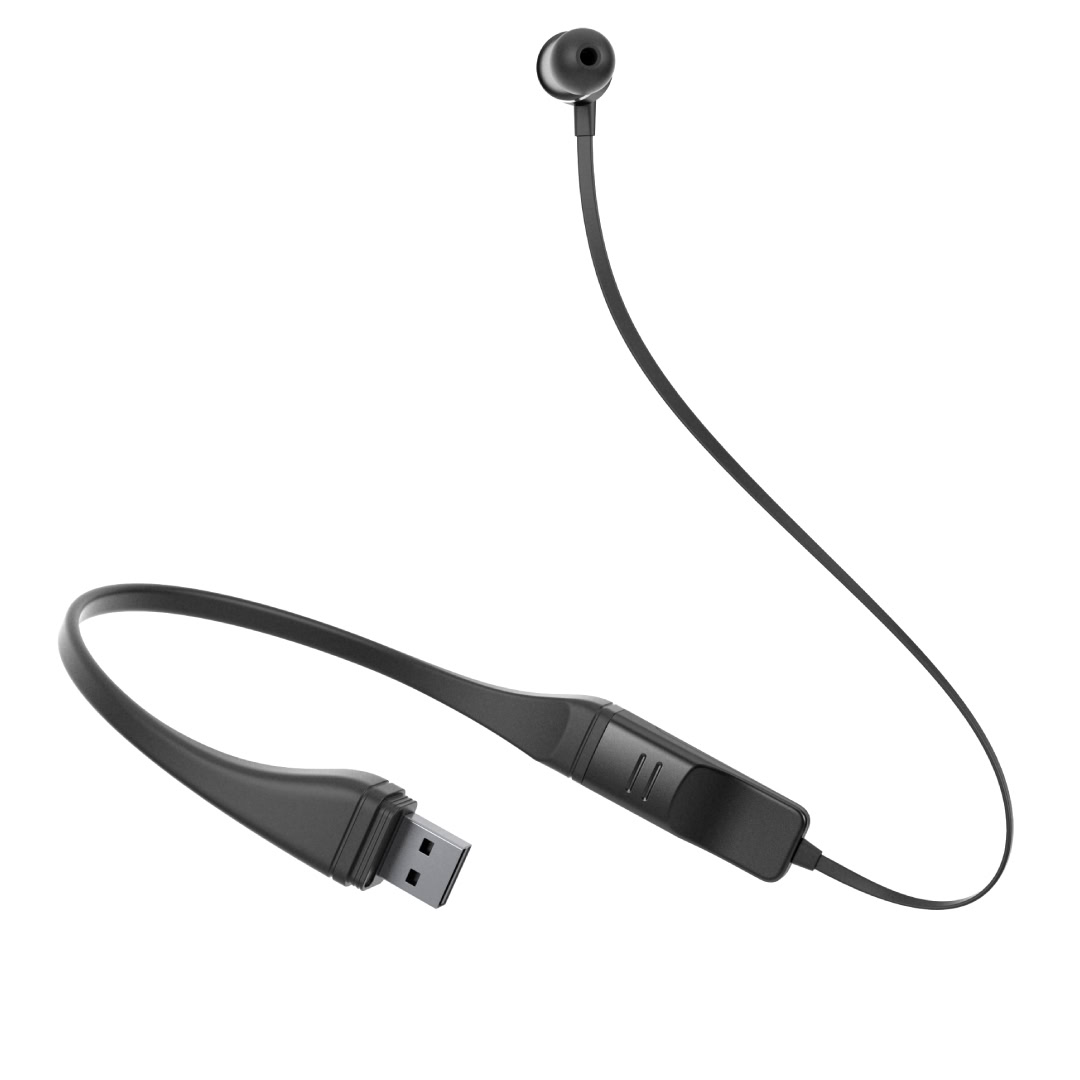 The wireless headset operates via Bluetooth 5.0 and is IPX5 water resistant. It’s made of mainly aluminum and silicone and measures 35cm long. Listeners can control music and calls via the integrated control module.