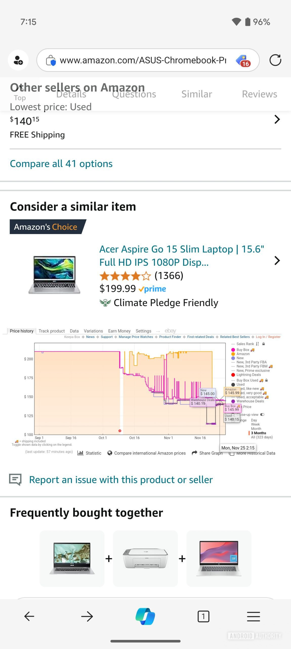 - Now, when you access the Amazon website on Edge Canary on Android, you will get the handy Keepa price tracker chart just below the product specifications.