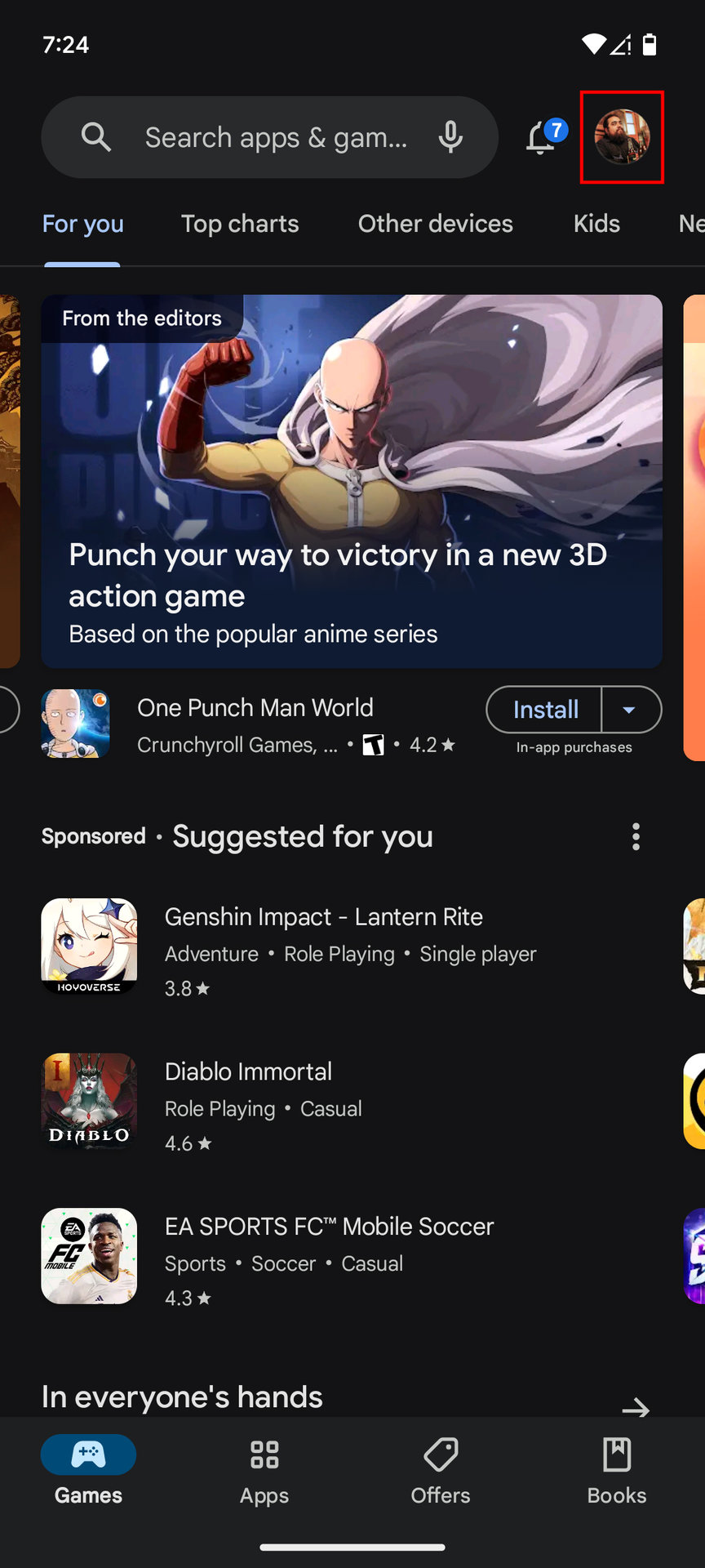 - Tap on your profile icon, in the top-right corner.
