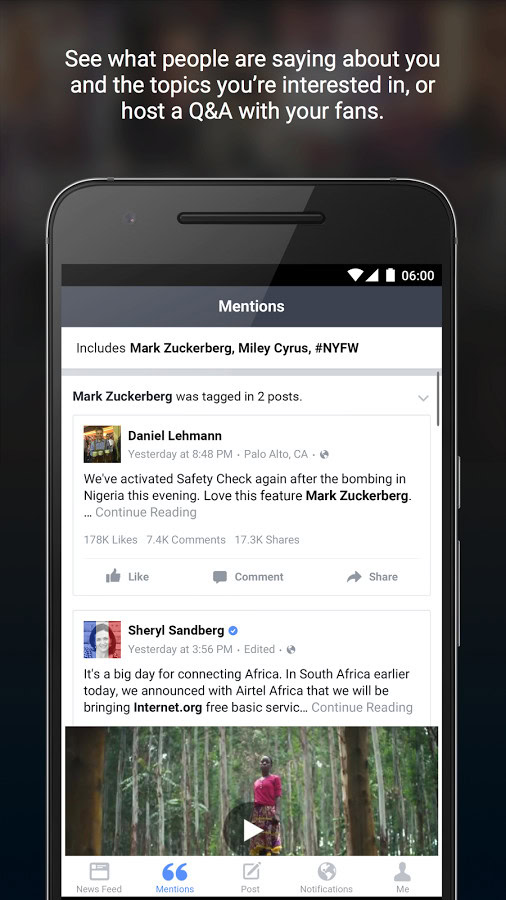 For us normal folks, the standard Facebook for Android application will do the trick when it comes to keeping tabs on friends and family members. For people who have a verified account, though, it can be a tad more difficult to connect with fans when using the normal version of the app. So if you happen to be an actor, musician or any other type of celebrity, there’s a new app available in the Google Play Store called Facebook Mentions that will let you communicate with your followers much more easily.