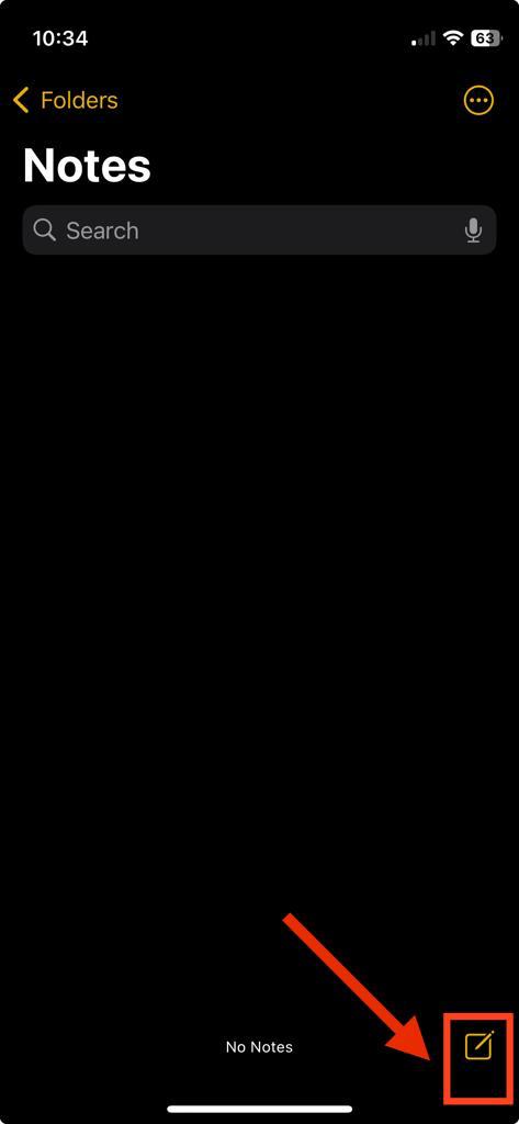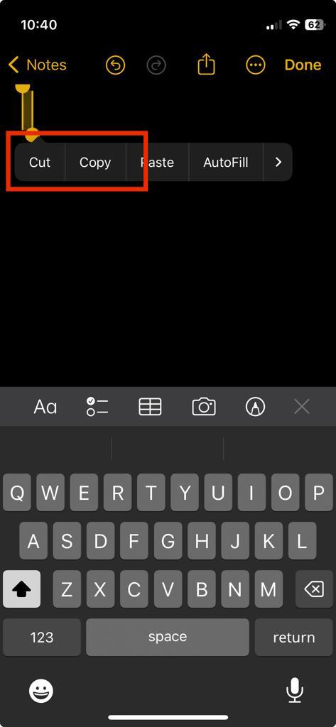 - Open the Notes app on your iPhone after you have copied something to your clipboard.