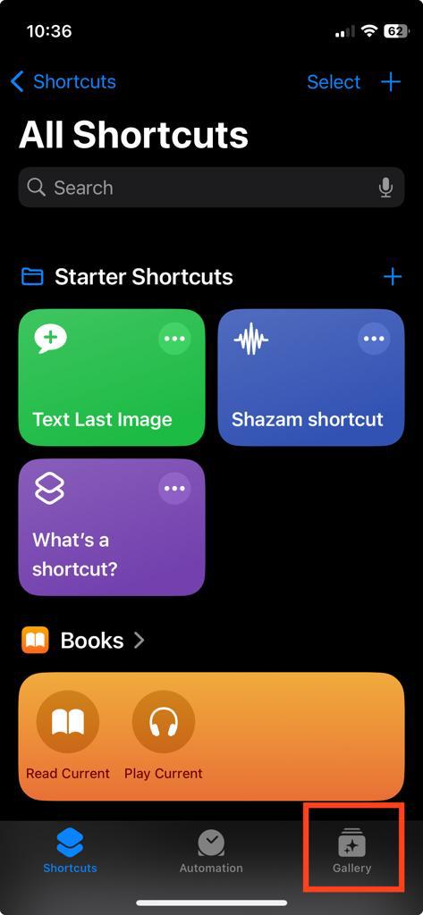 - Tap Gallery on the bottom right corner of the screen, then use the search bar to search for the Adjust Clipboard shortcut.