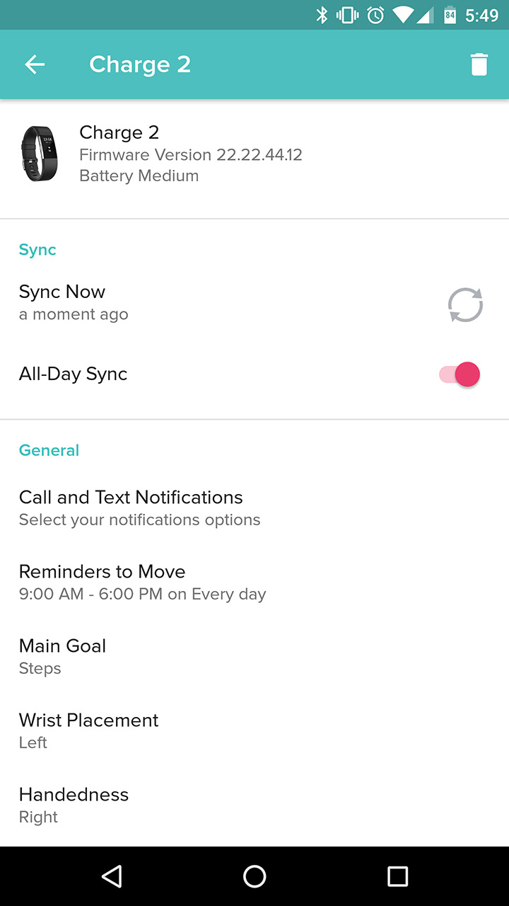 If you’d like to change any of your tracker’s settings, click on the device name at the top of the Dashboard. Here is where you’ll be able to manage call and text notifications, move reminders, wrist placement, silent alarms, and more.