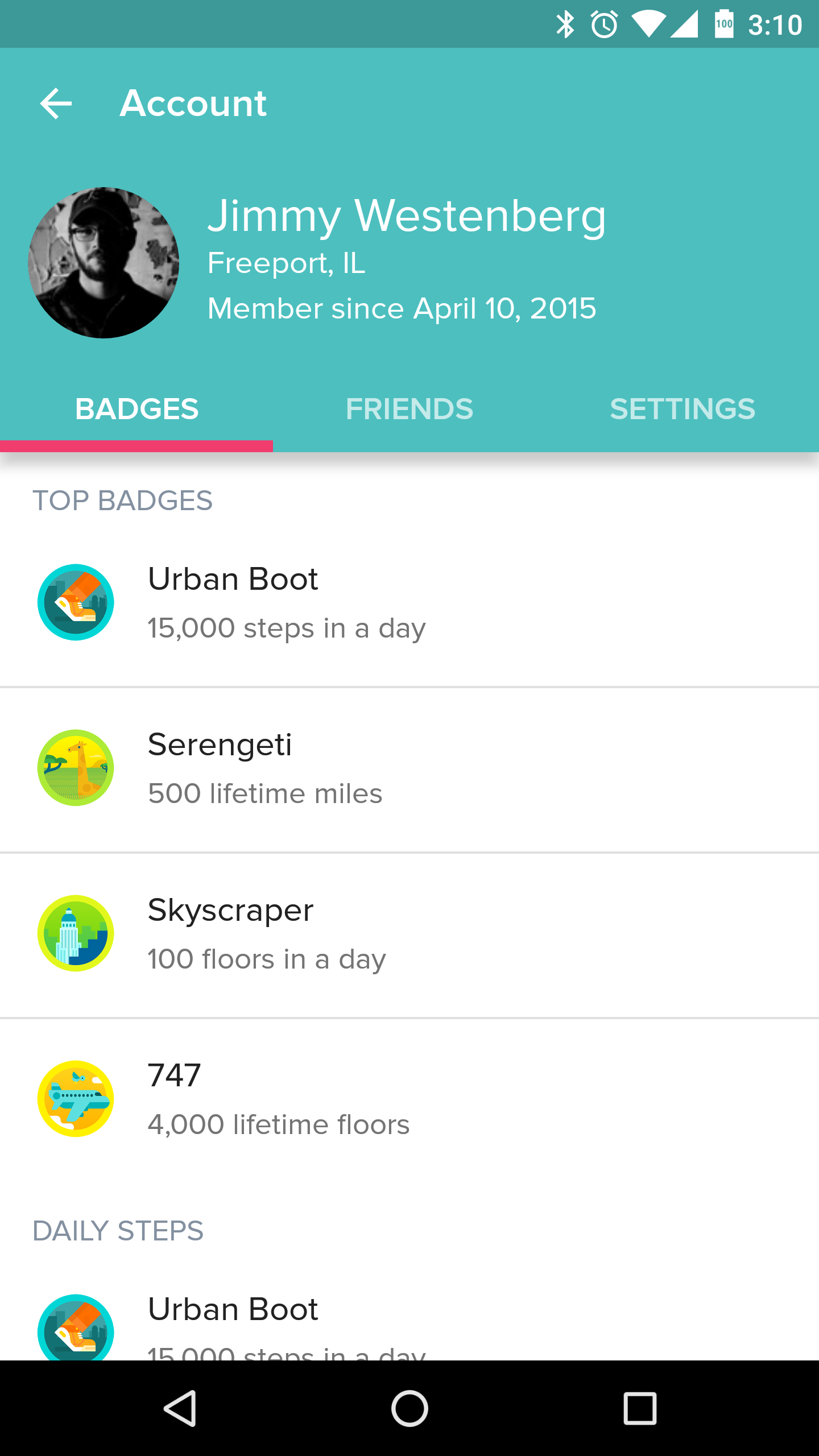 There’s a slide-out menu on the left side where you can view your Challenges, Friends, Account and manage alarms. The Fitbit app is pretty good at giving you daily, weekly, monthly and yearly challenges, and will let you know when each challenge is met. You can also connect with friends who are in the Fitbit community. Finding new friends with which to connect is as easy as tapping the FAB at the bottom of the screen, and selecting which people in your contact list have Fitbit accounts.