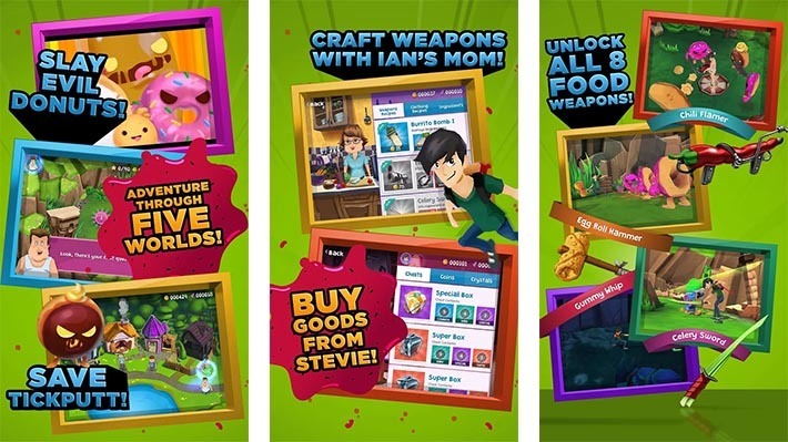 During the game you accumulate coins which can be used to upgrade weapons and buy more weapons such as burrito bombs and the taquito gun. Of course, they all require various ingredients that are found throughout the game or you can buy them with real world money if you so choose. The whole game is wrapped up in a goofy story of a bunch of mutant donuts that have kidnapped all of your friends.