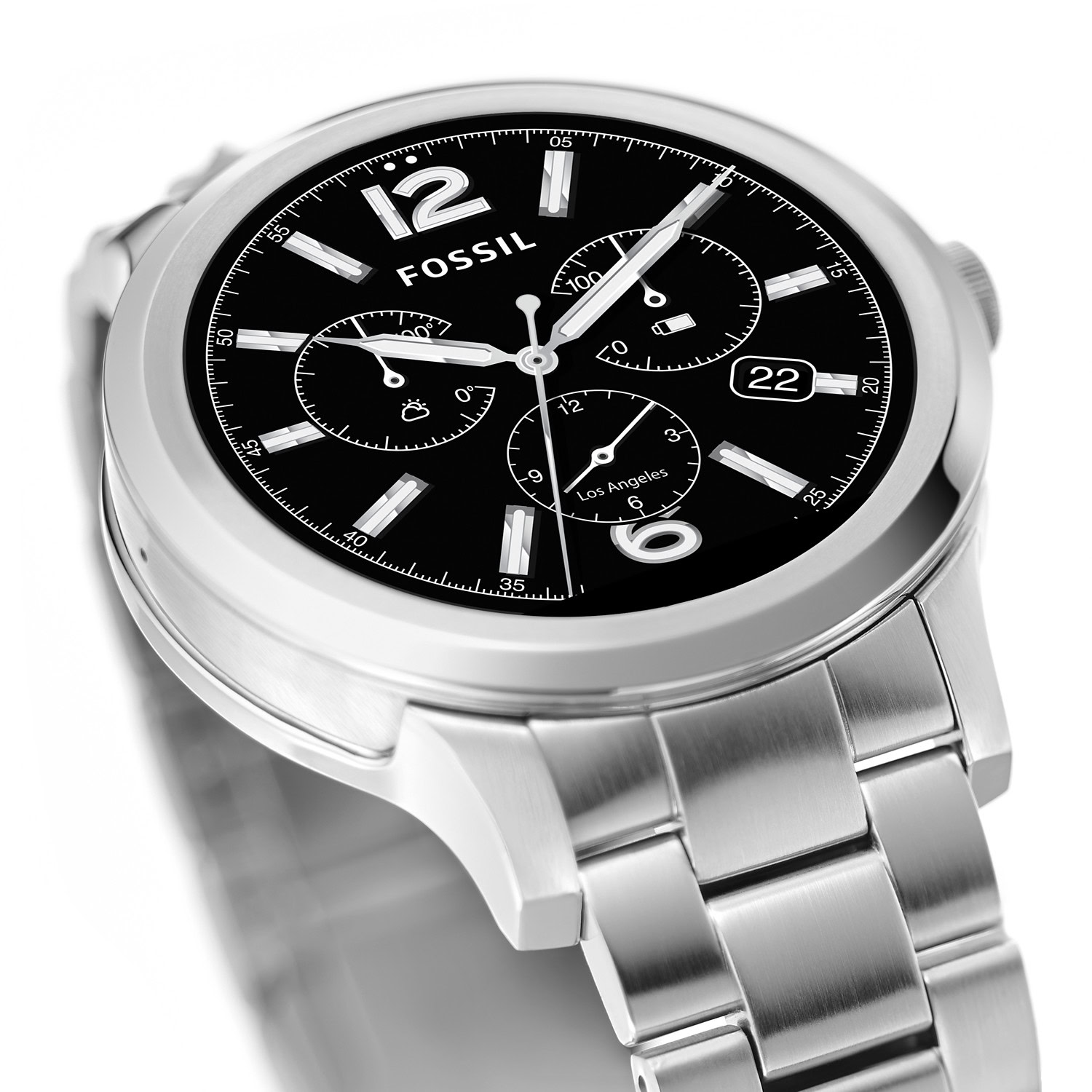 It’s not the most inexpensive Android Wear device on the market, but it’s still far from the most expensive. It comes in only one size, 46mm, measures 13mm thick and comes with an interchangeable 22mm Silver stainless steel band. It also sports 4GB of on-board storage, an accelerometer, gyroscope, and a 400mAh battery that Fossil says will last you 24 hours on a single charge. It also has an IP67 rating, which means it’ll be protected from dust and water immersion up to 1 meter in depth.