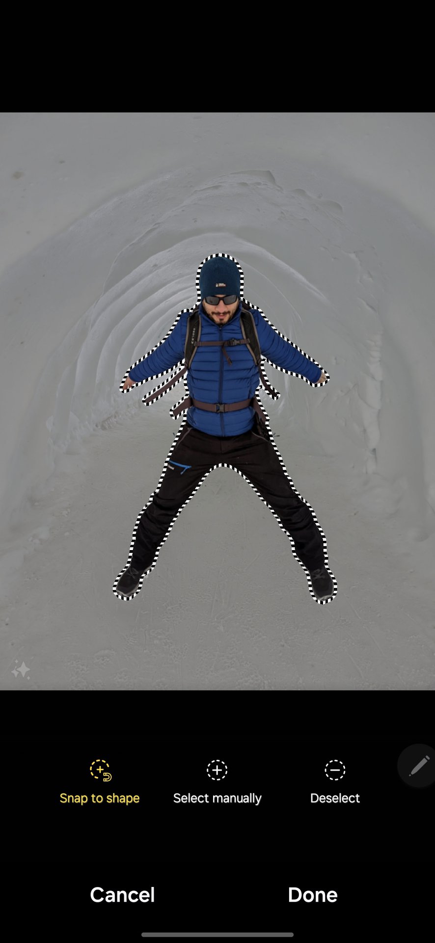 Plus, Google’s selection tools allow for much more precise edits. In this pic, I was able to select the glove my husband was holding in his left hand, without selecting his gloved left hand, and thus delete only the extra glove. Samsung wouldn’t allow me to only select the dangling glove, so it decided to replace his whole hand instead.