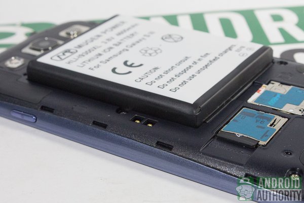 Weight may also be an issue, too. The default battery weighs only about 45 grams (1.6 oz), which makes the Galaxy S3 exceptionally thin and light. The Mugen Power extended battery, however, weighs about 90 grams (3.2 oz) and is a bit bulky.