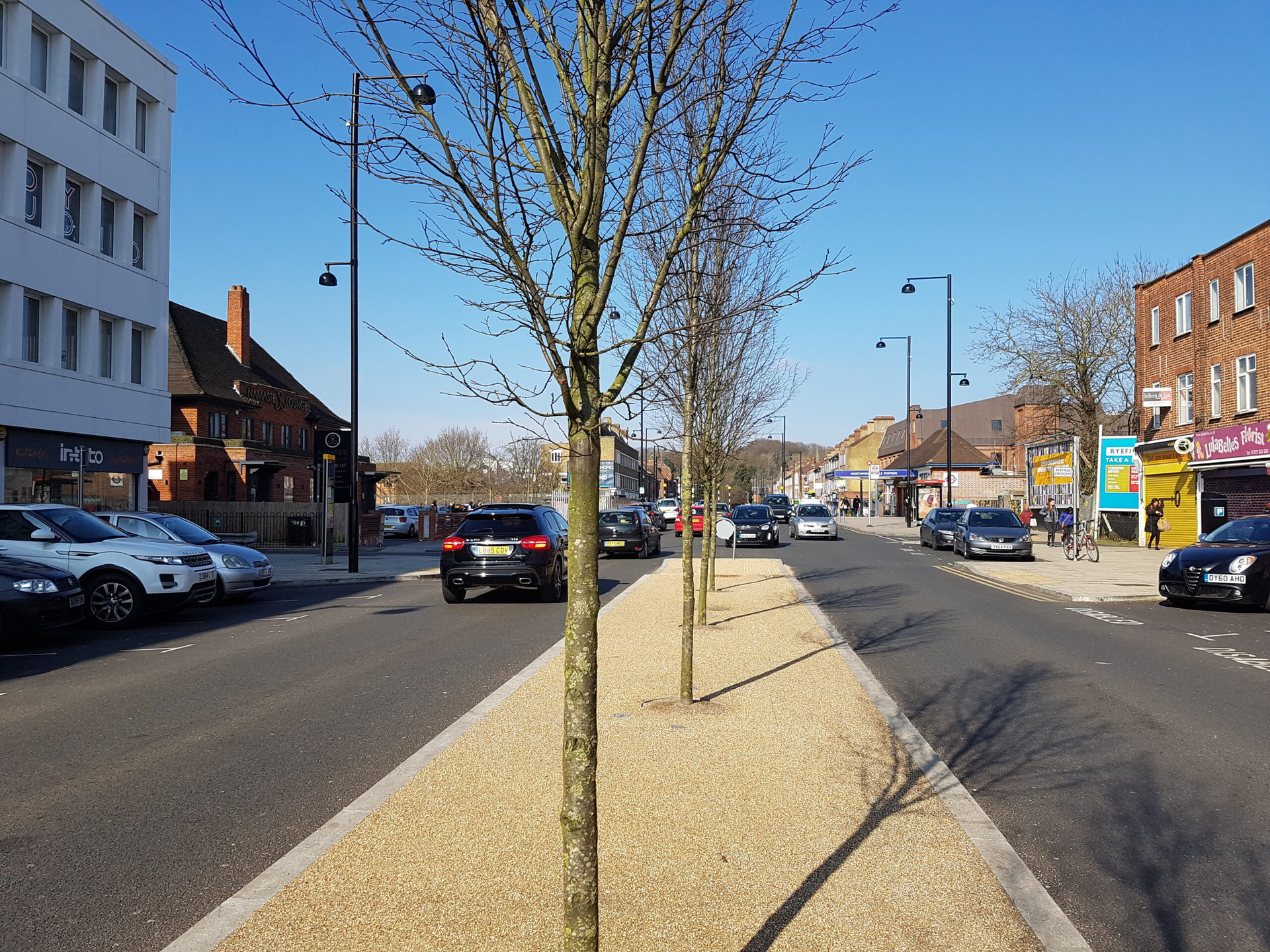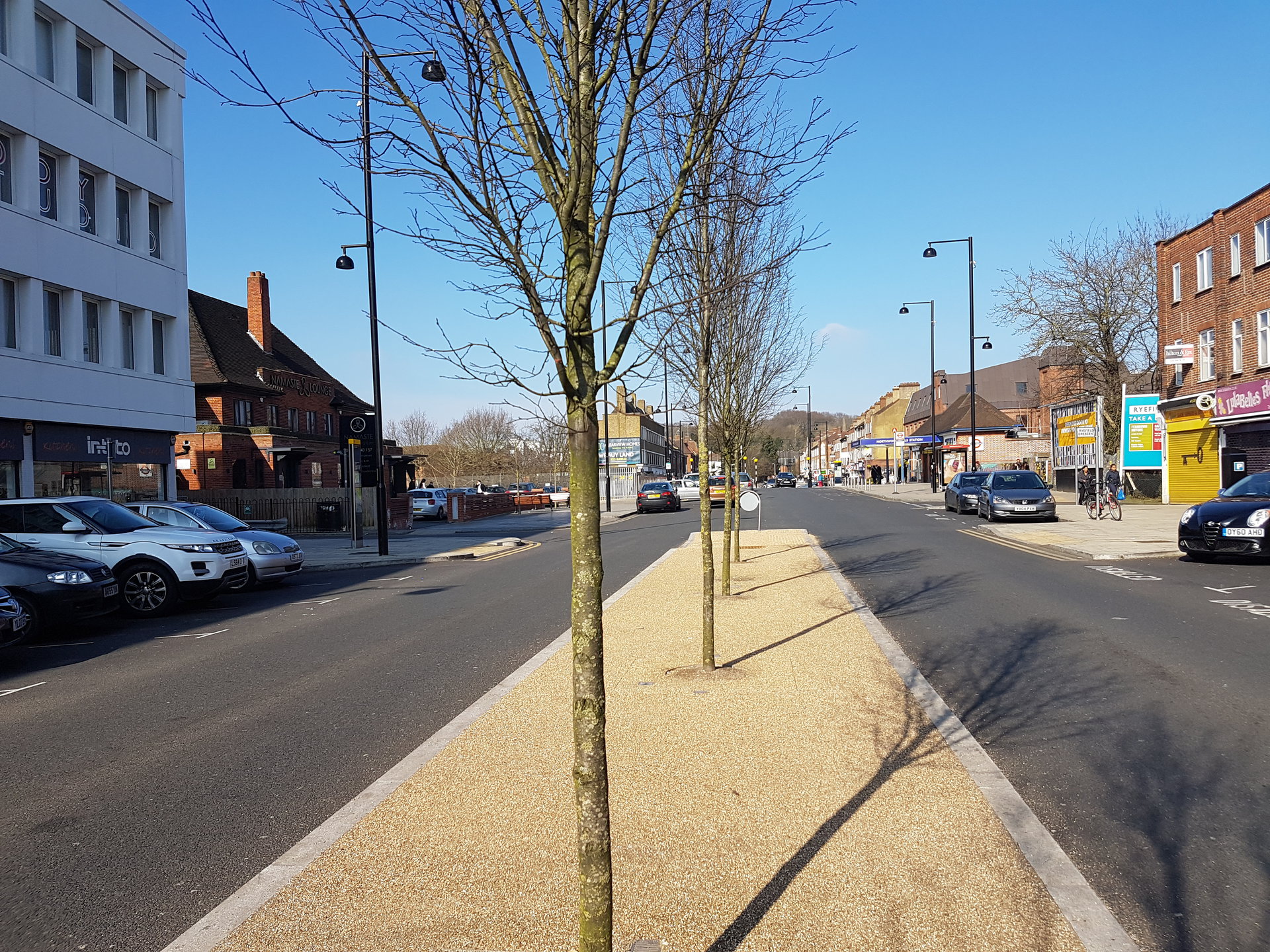 Take a look at the images below. Things definitely look more yellow on the images taken with the Sony sensor. For a clearer look, zoom into the white paper in the newspaper dispensary, or the ground right under the trees.