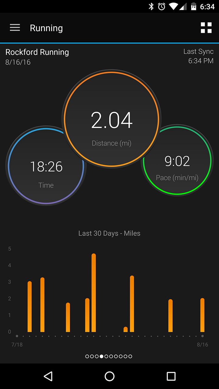 Tapping on a particular Snapshot will give you more detailed information on that metric. For instance, the running Snapshot only shows distance, time, pace and your miles over the last 30 days, but tapping on any one of these areas will give you more detailed workout data.