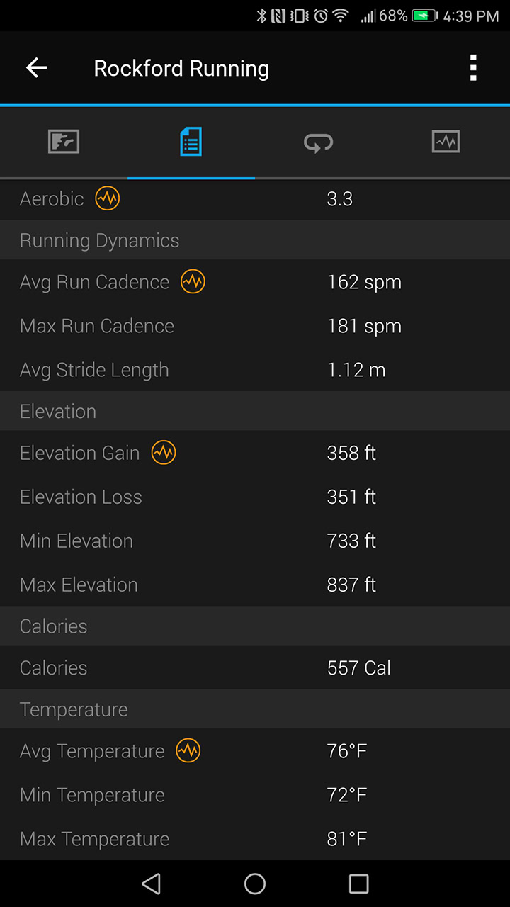 Once you’re done with your run, more details can be found inside the Garmin Connect app. Here, you can not only get a better look at a map of you run, but also averages on your pace, speed, timing, heart rate, elevation, temperature, and more. Basically, if you’re looking to improve your runs over time, the Connect app will help you do so. It’s not the prettiest piece of software out there (or the most user friendly), but it does display the maximum amount of information if you’re looking for it.