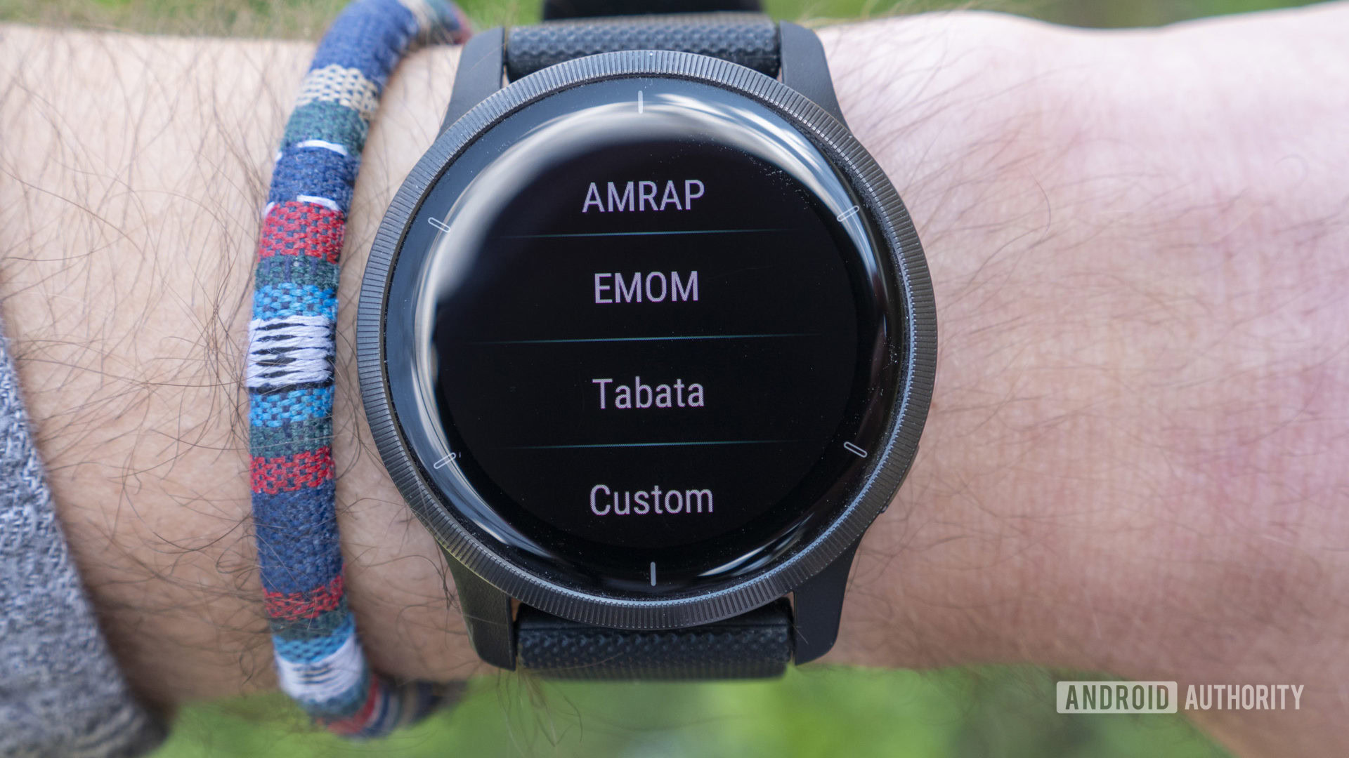 You have a few options for HIIT workouts. There’s an all-encompassing Free mode if you’d like to keep tabs on your overall data. There are also four timed workouts: AMRAP, EMOM, Tabata, and custom. The first three are pretty self-explanatory for HIIT veterans. Custom allows you to set a time limit for your active and rest times, as well as how many moves and rounds you’d like to accomplish. Also, there are three pre-loaded HIIT workouts if you’d rather follow along on your watch.