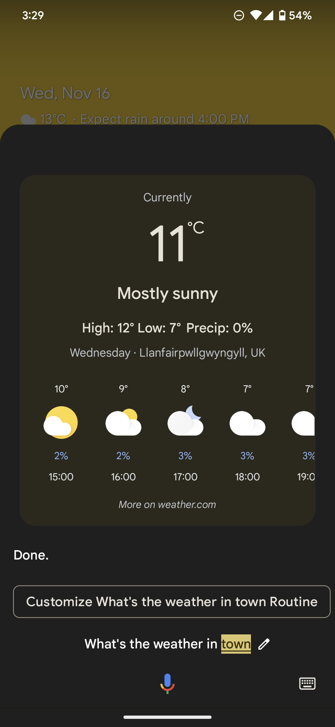 If you don’t know how those work, you have to head to Google Assistant settings (either from the main Google app or Google Home app), then tap Routines > New > Personal or Household (depending on whether you want other home members to use this shortcut too). Then, Add starter > When I say to Google Assistant and type “What’s the weather in the mountain” and tap Add starter. And finally Add action > Try adding your own and type “what’s the weather in Qlayaat Lebanon” and tap Done.