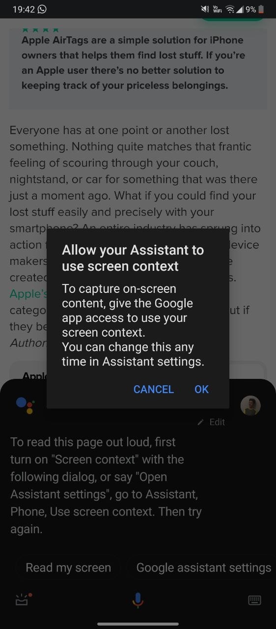 Note: The first time you try this command, the Google app may ask permission to read what’s onscreen.
