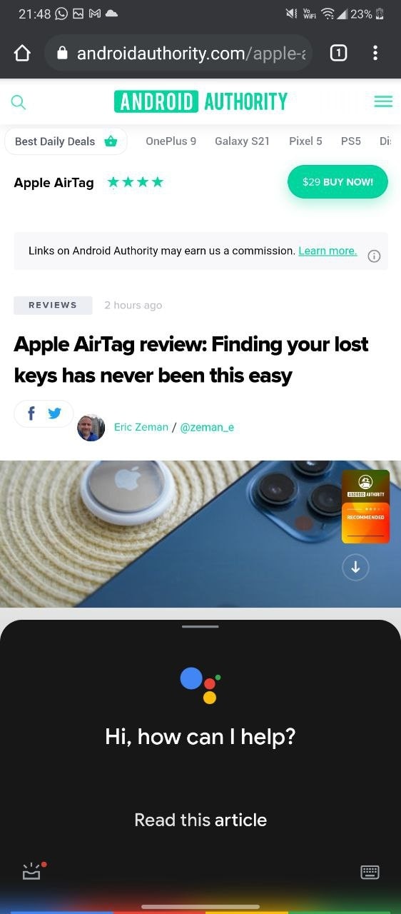 To activate the feature, open an article (such as this one) in a web browser on your Android phone. Then bring up Assistant, and say “read this article” or “read this page.”