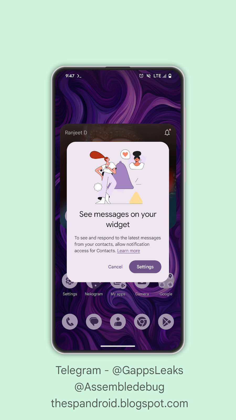 - The app could also get a widget that lets you see recent messages of a chosen contact.
