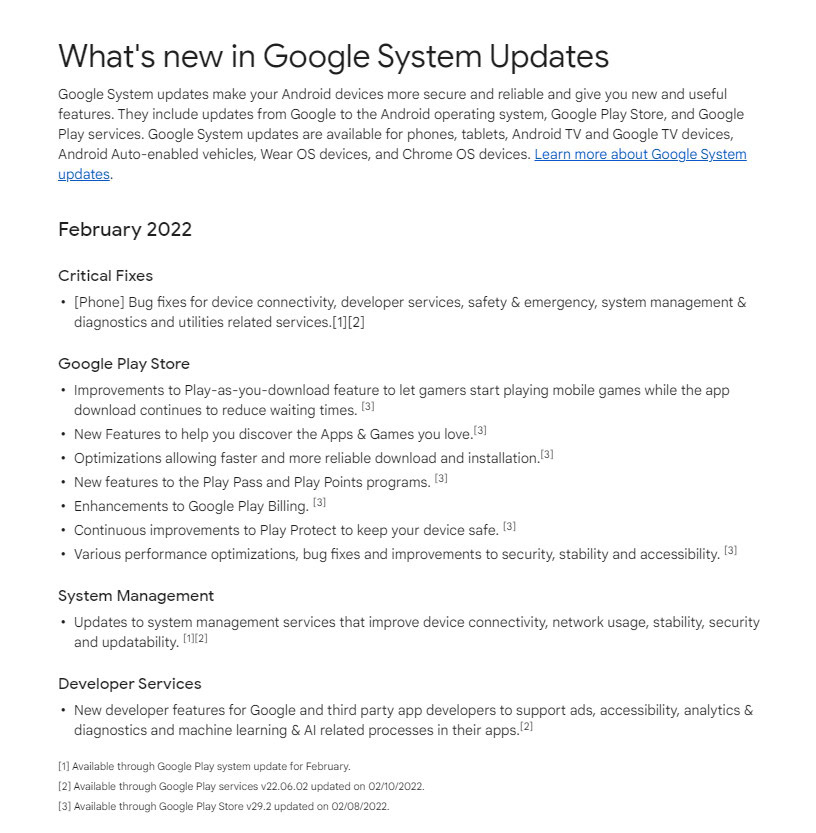 - Google has posted the changelog for its February 2022 system update.