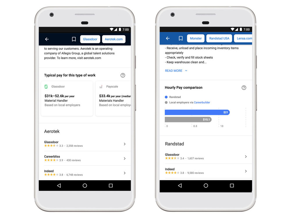 Google is already showing tens of millions of job opportunities from prospective employers. With numbers like that, it’s important that seekers are able to drill down to find jobs in their field that pay what they need. Google says that 85% of job postings in the US today don’t provide salary information. Applying for a job that isn’t willing to pay what you want not only wastes the company’s time, but your time too. To that end, Google is now showing salary ranges from sources like Glassdoor, PayScale, LinkedIn, and more. For jobs that do have a salary listed, Google will show you a comparison to the estimated salary range for that job.
