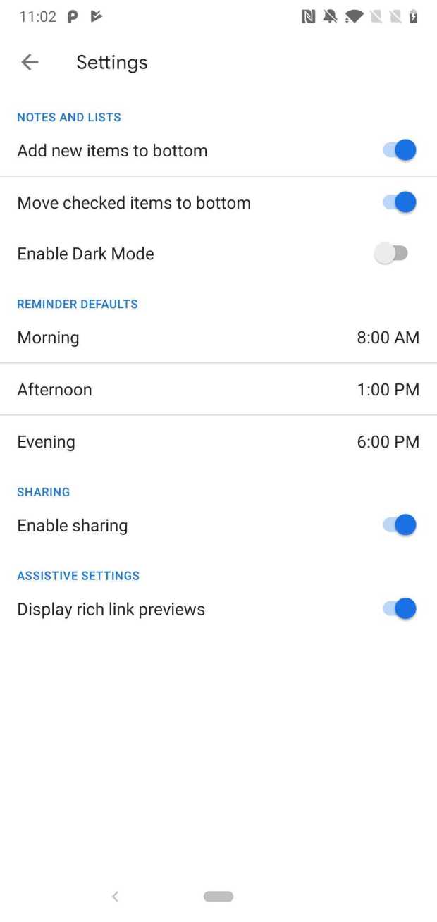 Those hoping for a comprehensive dark mode will be disappointed right now, as it only seems to extend to the search bar and “take a note” field. So that means the settings page, main menu, and your various notes are still an eye-searing white. It’s also worth noting that we’re looking at dark grey colors for the dark elements, as opposed to pure black. Check out 9to5Google‘s images below for a better idea of how it works right now.