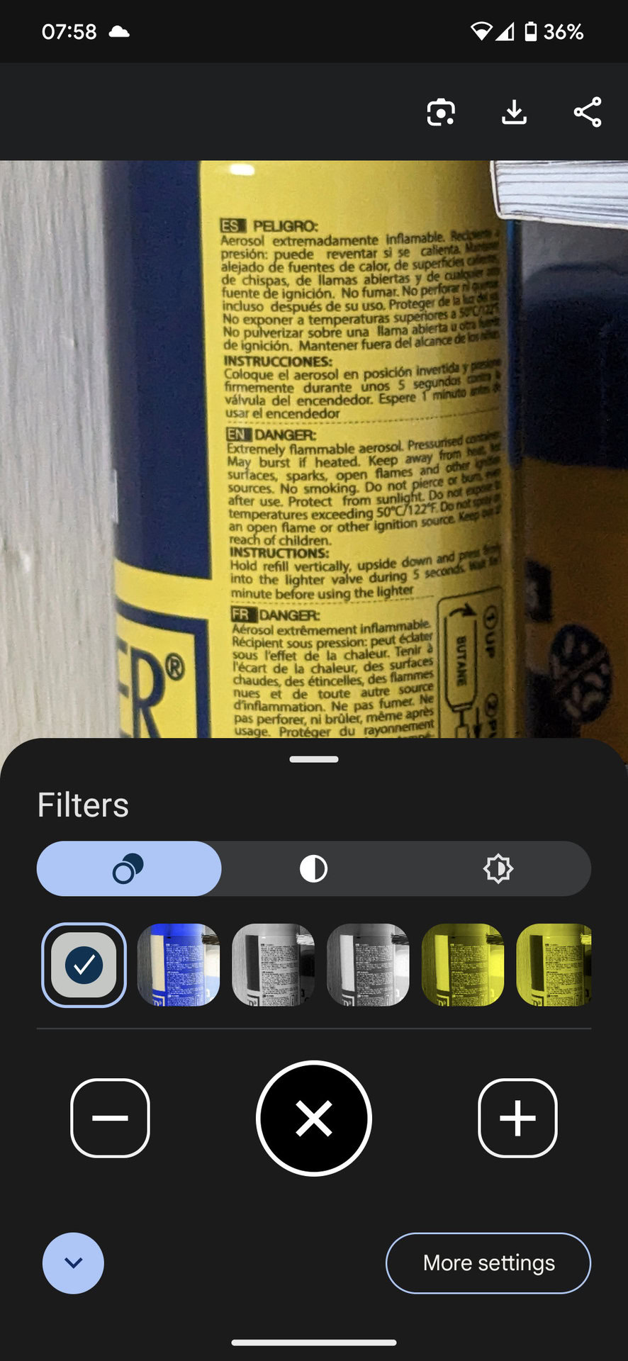 The app offers a number of handy features compared to just zooming in with your camera. This includes brightness and contrast adjustments, and a number of filters for improved legibility.