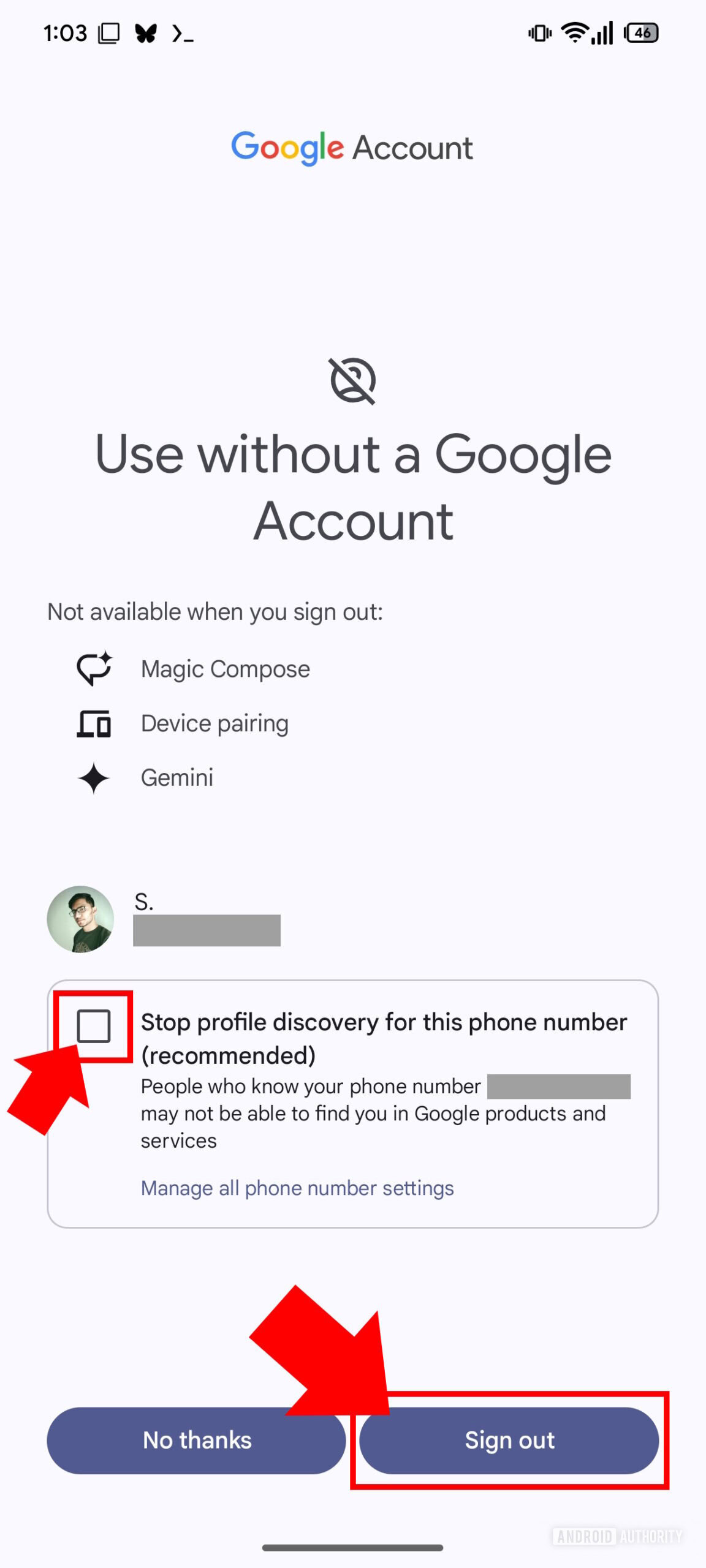 Note that doing so will disable features like Magic Compose, Device pairing, and Gemini and stop Profile discovery.