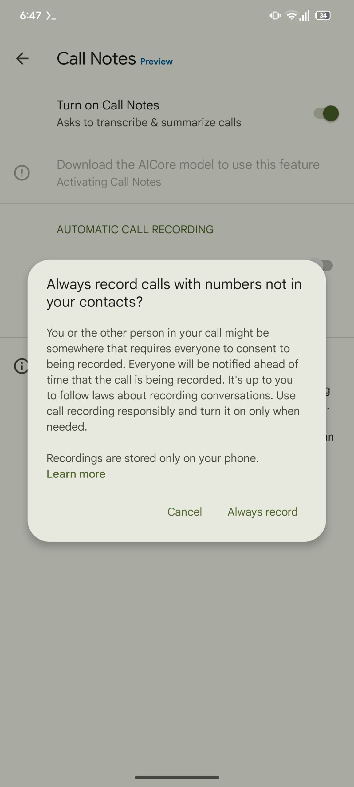 However, this action is deliberate and manual, as you have to activate the feature by tapping the Call Notes button during every call you want to record. Needless to say, it’s pretty cumbersome if you want to use the feature on many calls.