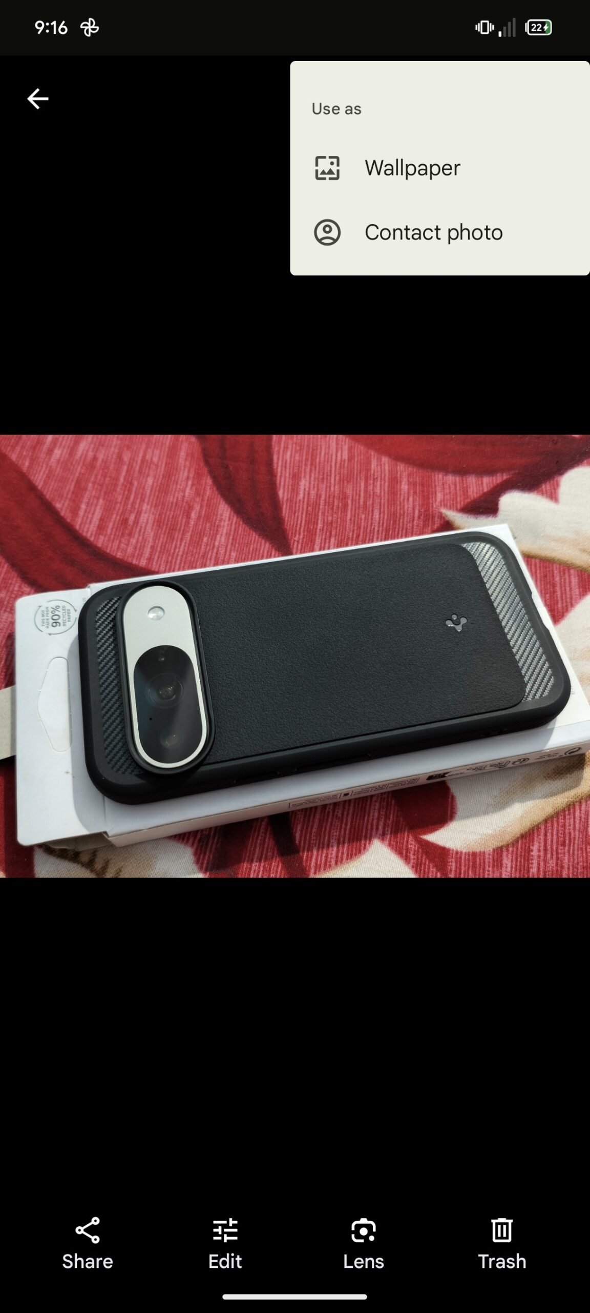 Digging into Google Photos version 7.21.0.737764319, we’re still able to get an early preview at this new UI with revised overflow menu behavior, only this time we get “Use as” among the options there. Tapping this then presents us with one of two options: Set the image as as your wallpaper, or assign it to a contact.