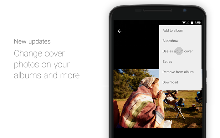 The latest update brings Google Photos for Android up to version 1.2. Along with a selection of bug fixes and performance improvements, Google Photos now allows users to change the cover photo for their albums, and photos can now be added and removed from a particular album from the same screen.