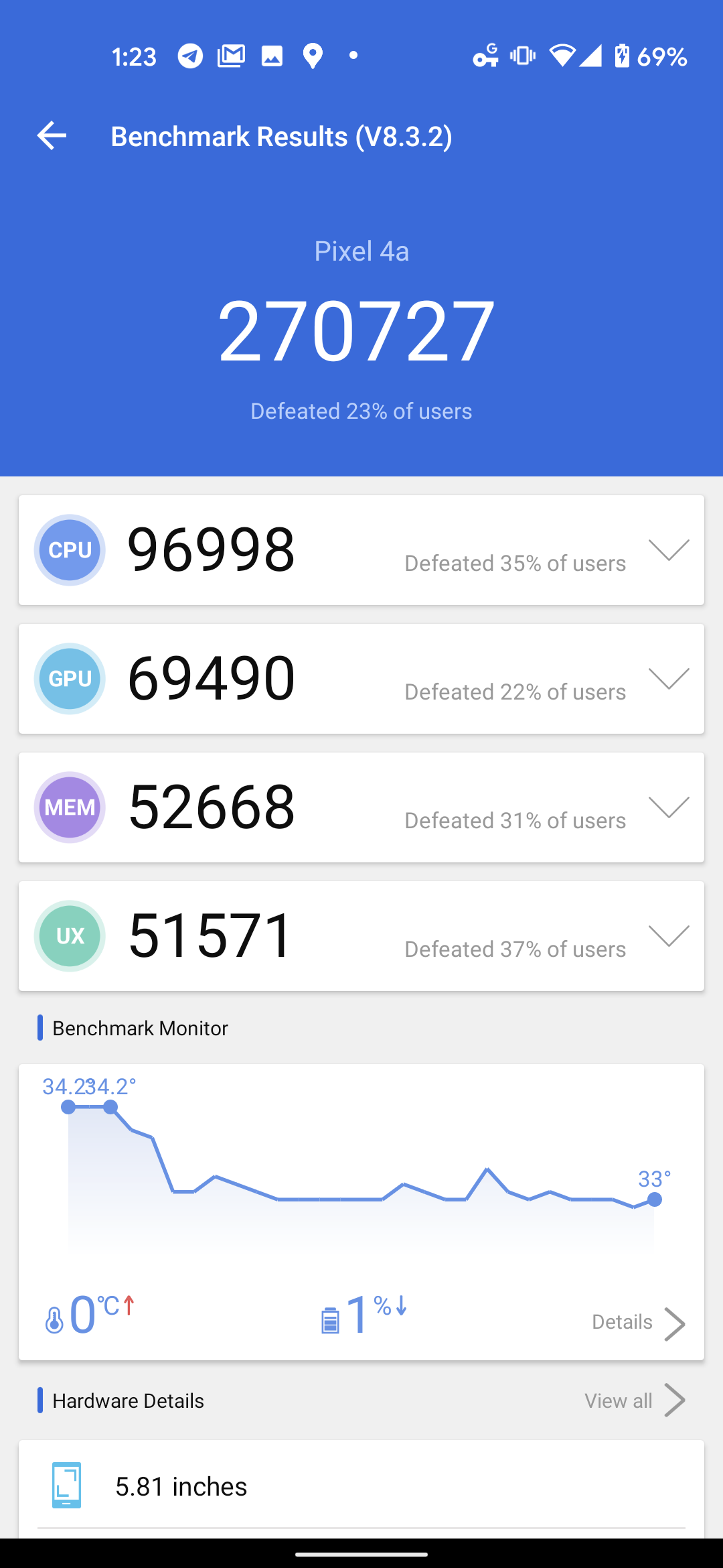 In benchmarks, the Pixel 4a didn’t perform exceptionally well, but that’s to be expected. For example, the Pixel 4a scored significantly lower than the OnePlus Nord, but this performance difference is due to the lesser chip in the Pixel 4a. In casual use, I didn’t notice a difference.