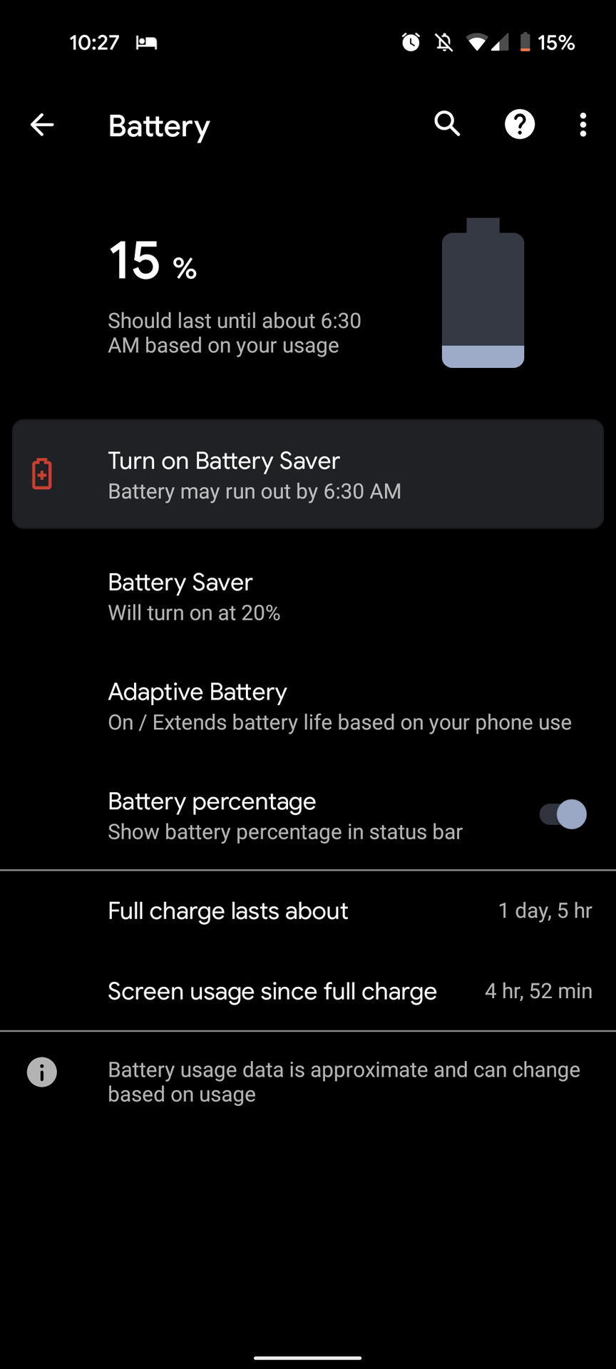 Since this is a Pixel phone, you not only get your standard battery saver mode, there’s also extreme battery saver mode if you want to eke out as much juice as possible.