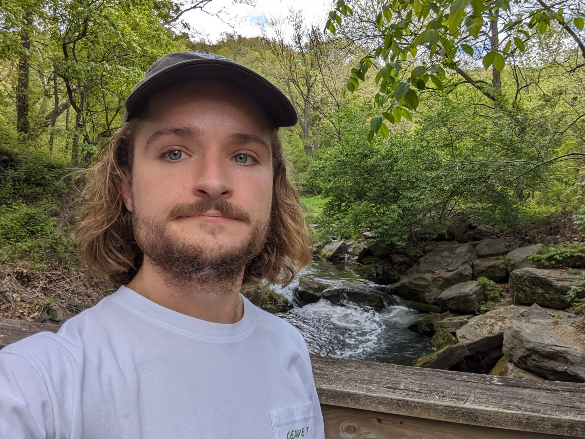 As part of its overhaul, Google bumped its selfie camera from 8MP to 13MP. We didn’t have any complaints about the previous generation sensor, and there aren’t any new issues to report. Some clouds are washed out in the standard selfie, but key details like my face, clothing, and the close background are accurate. You can pick out several shades of green in the trees and bushes and countless tangled branches. Google’s portrait identification is spot on, too, accurately tracing my hair and the edges of my shirt while ignoring the wood railing behind me. The Pixel 7a even accounted for the bottom of my hair in spots where I couldn’t be sure if it was curls or rocks over my right shoulder.