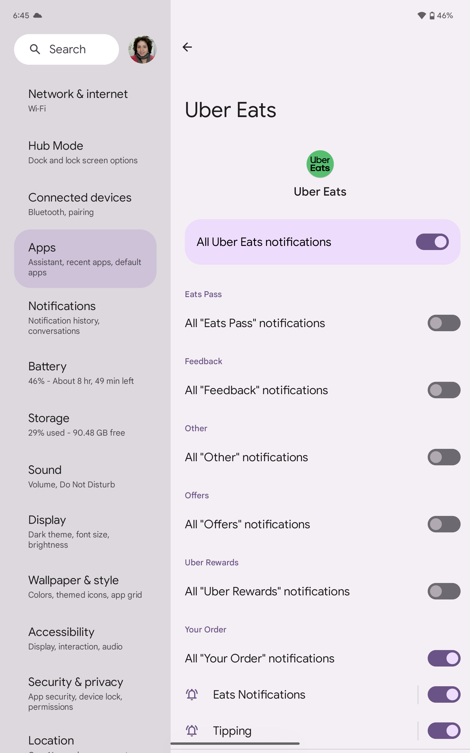 Android, on the other hand, has had notification channels since 2017 with Android 8.0 Oreo, and developers have had to adopt them over the years. Even the more reticent ones seem to have some kind of channel management these days. Thanks to these channels, I can choose exactly which notifications I want to see on the Pixel Tablet, so I don’t have to see my Amazon order from two days ago or a message I received on Telegram the day before. I can restrict my WhatsApp notifications to calls and my Uber Eats messages to orders, for instance.