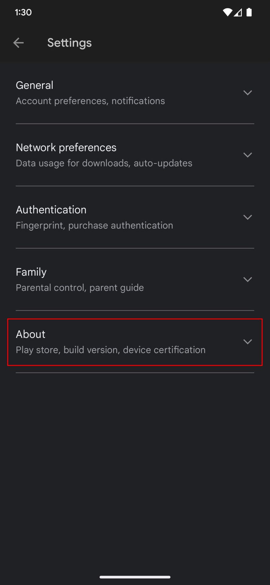 The Google Play Store should update automatically. If, for some reason, yours didn’t, simply update it from the app’s Settings. Expand the About section and tap on Update Play Store.