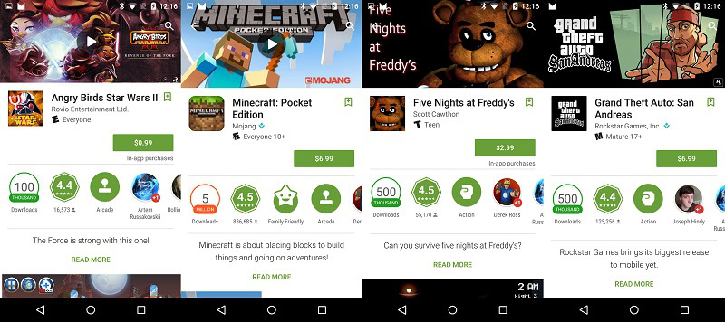 You’ll find the new ratings in two places. The most obvious of these places is right under the app’s name, but you can also locate the ratings in the “Read More” section for the Android Google Play app or the “Additional Information” screen on the web version. Keep in mind the new ratings will only show up on Android if you are running Play Store version 5.6.6, though the web version is live and working for everyone.