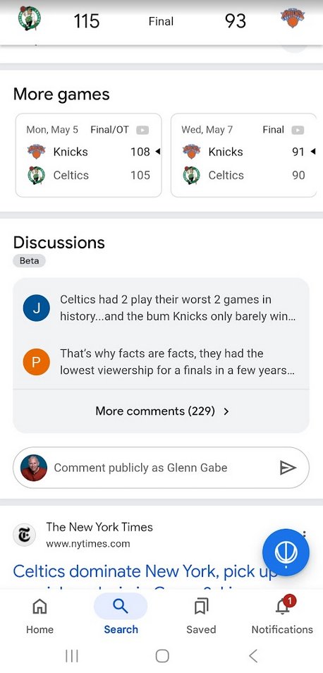 X user Nicholas McDonough spotted that Google has quietly launched Google Discussions in beta on mobile. This surfaces when users in the US search for a ‘team vs team’ query. Google presents the usual sports-related rich content, like the score and upcoming games, followed by the Discussions tab, where users can drop in comments. X user Glenn Gabe shared these screenshots for the feature: