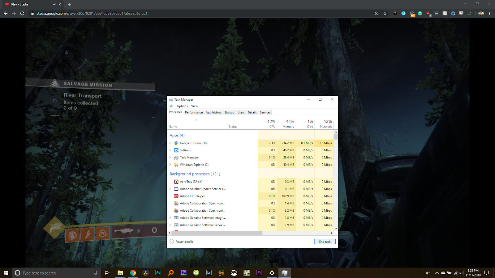 When playing Stadia on my Windows PC through the Chrome browser at 720p, Stadia used between 12 and 20Mbps. In contrast, a Netflix stream used about the same amount, but Netflix can buffer content to stop streaming constantly. Because Stadia is always pulling data and can’t buffer, it will use a lot more data.