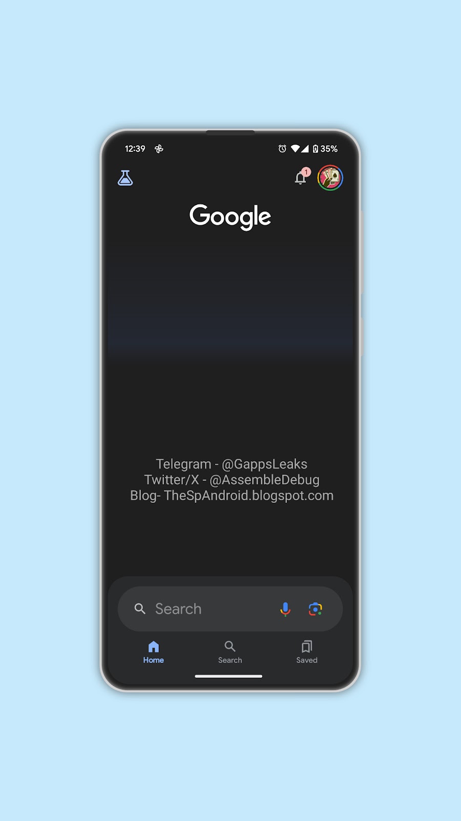 TheSpAndroid spotted that Google had moved the position of the search bar on the new version 14.48.26.29.arm64 of the Google App. The search bar now sits at the bottom instead of the top; you can see the same in these screenshots.
