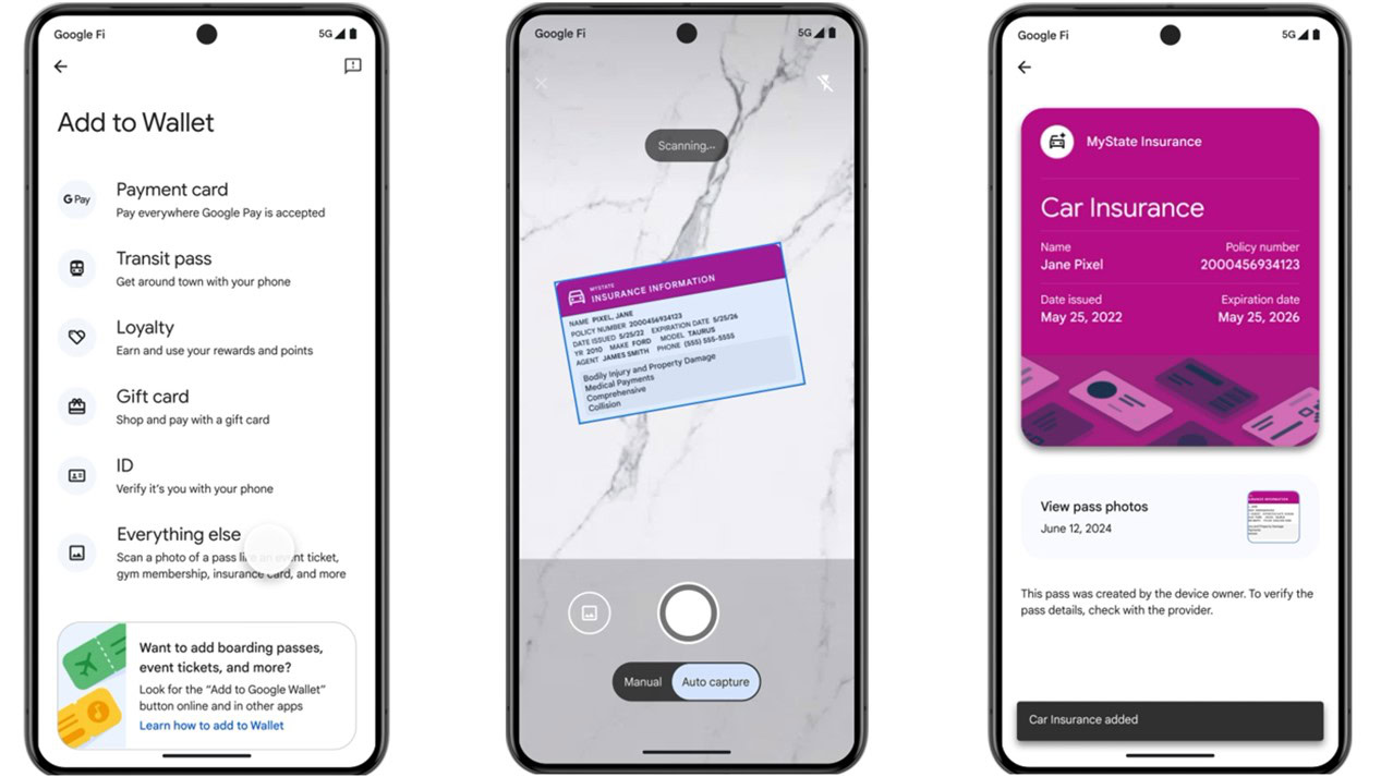 Google Wallet had already gone beyond bank cards to store things like loyalty and gift cards, but you were restricted to cards with a QR code or barcode that could be scanned. In acknowledging that many people also keep text-based documents on their person for reference, this addition from Google is taking you another step closer to leaving your physical wallet at home.