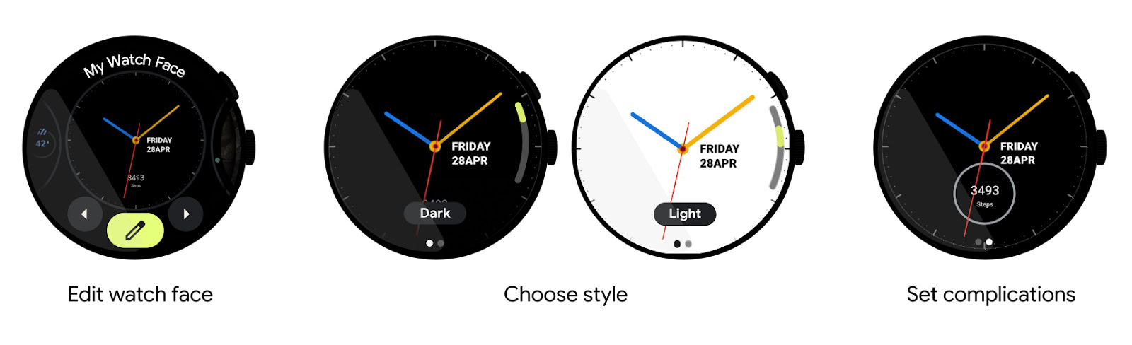 A watch face editor is also included within Wear OS that works with Watch Face Format, so watch face designers would no longer need to build their own editor inside their watch face app to let users customize their watch face.