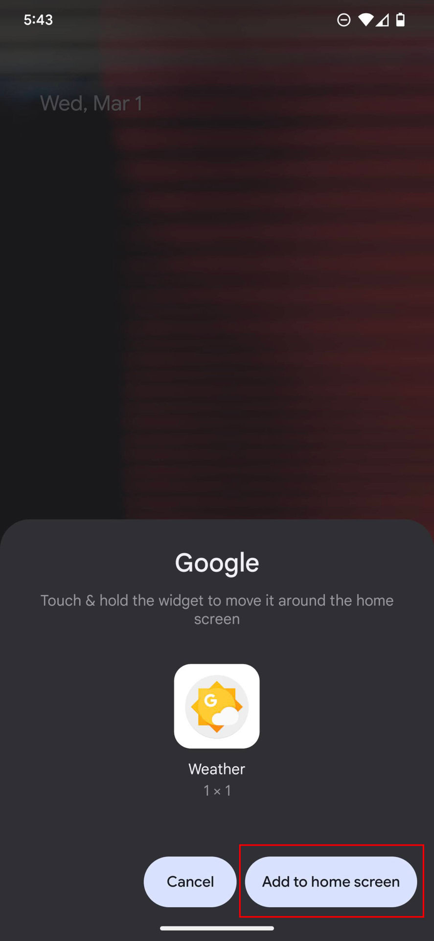 You can't really get the Google Weather app unless you use a Pixel phone. However, you can create a shortcut on your home screen to access the web app directly. To do this, open the Google app and search for "Weather." Scroll to the weather widget, and tap on the three-dot menu button. Select Add to home screen, and confirm by tapping on Add to home screen.