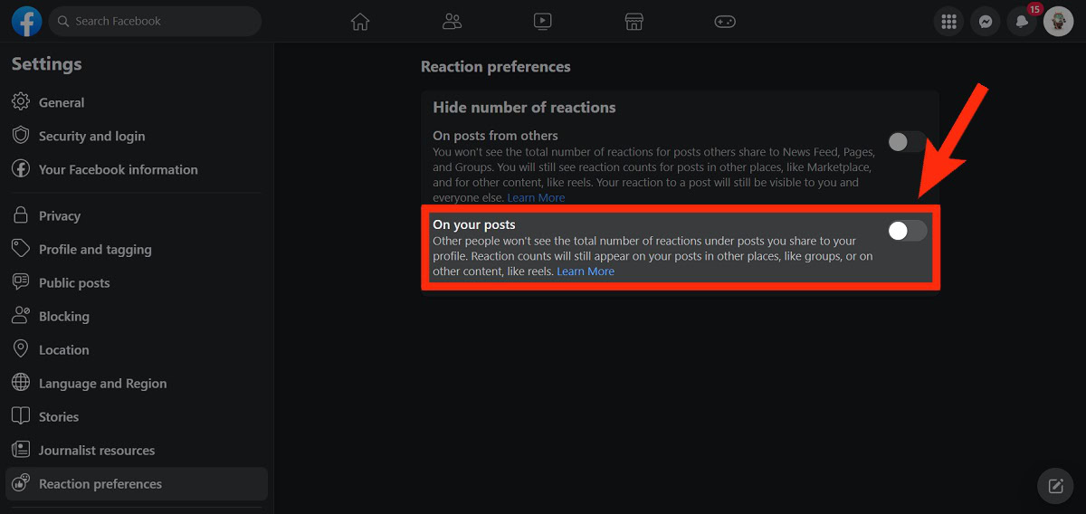 To hide likes on Facebook, go to Menu > Settings & privacy > Settings > Reaction preferences. Under Hide number of reactions, tap the toggle for On your posts.