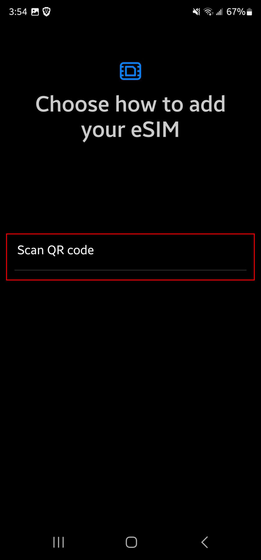 - Scan the QR code provided by your carrier, or enter the info manually by tapping on Enter activation code.