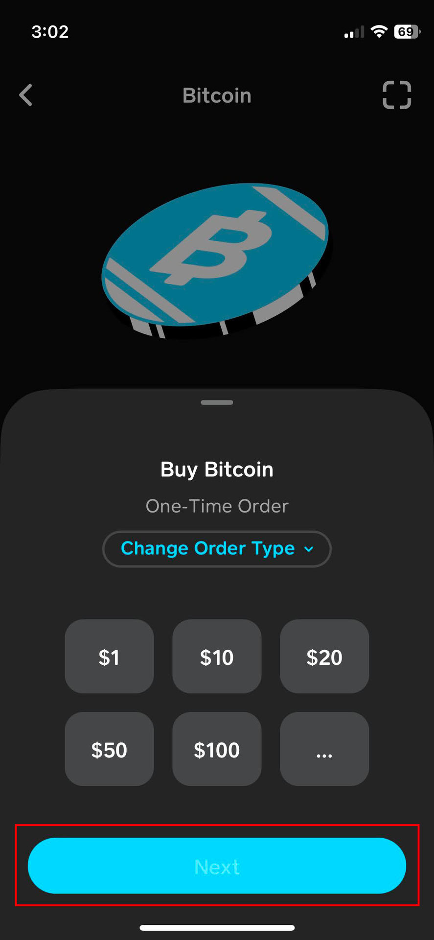 - By default, the purchase will be a Standard Order. Tap on the Change Order Type option to switch to Custom Purchase Order or Auto Invest and follow the instructions. Ignore this step if you want to simply buy Bitcoin right away.